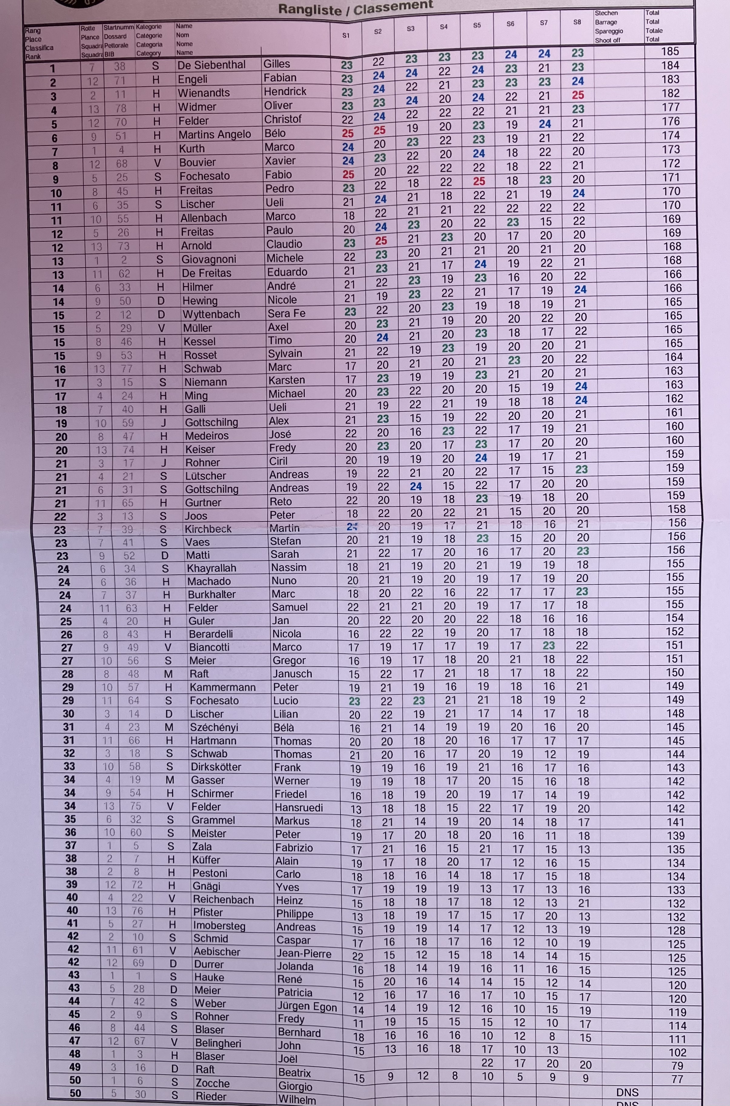 Die Seniorenklasse gewann Gilles de Siebenthal mit 184 Treffern vor Nassim Khayrallah mit 175 Treffern und Christoph Vandelle mit 170 Treffern